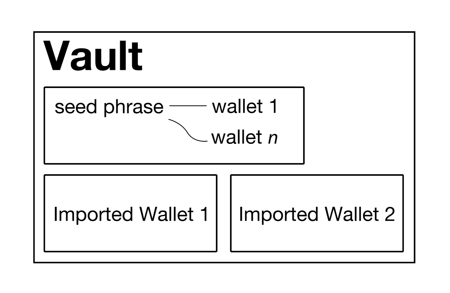 As a result, we came up with the idea of a Vault to contain both seed-generated wallets and imported wallets in a single exported file. This makes it super easy for users to backup all of their wallets regardless of whether they’re seed-generated or imported from private keys. Of course, we also built the option to export individually using the standard wallet format as well.