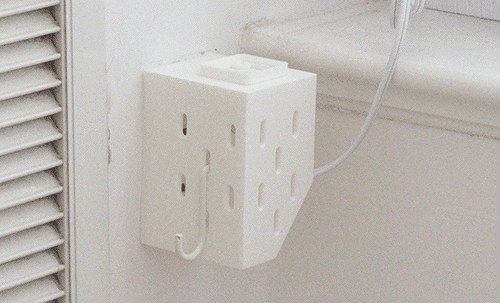 Covers the wall outlet, as well as provides Ikea Skadis-compatible pegboard to mount SKADIS accessories (like a SKADIS-MagSafe charger holder).